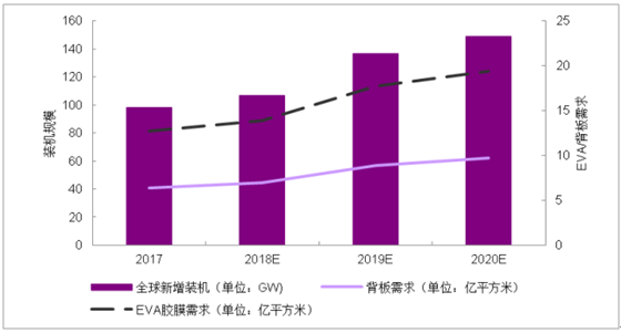 2017年至2020年EVA胶膜与背板市场需求