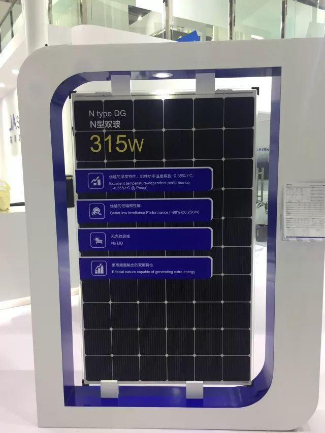 晶澳N型双玻组件采用双面结构可产生更高的能量输出;同时兼备优越的低辐照性能,优越的温度特性,组件功率温度系数-0.35% /℃;在原材料方面采用N型硅片作为衬底,具备无光致衰减的优点,保障了组件的发电性能。