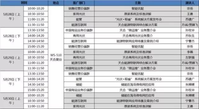 看完热闹我们来看门道!展厅现场安排了天合光能各事业部专家现场讲解,新鲜出炉的干货燃爆展厅。时间安排如下: