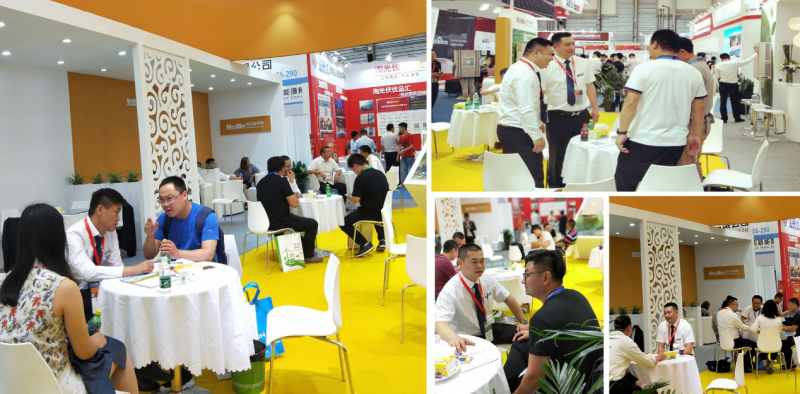 值得一提的是本次雷乐展台风格,大胆使用金色,简约大方的金绿风,给你一种别具一格的视觉体验。金色代表着辉煌、高贵,承载Reille 50年所创造的辉煌,金色和绿色的搭配让人耳目一新。