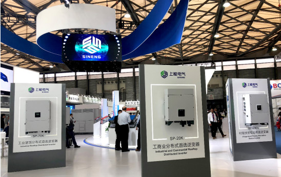 针对大型工业屋顶、小型工商业屋顶、村级扶贫电站等分布式应用场景,上能电气展出15kW~70kW多功率段组串式逆变器。采用多电平、软开关、多路MPPT输入等领先设计和创新技术,同时配合组串P-V曲线扫描技术、PID抑制技术,更高效、更可靠、更智能。