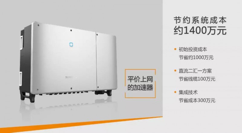 此外,系统集成技术在降低度电成本方面也会达到1+1>2的效果。在领跑者项目中,支架跟踪系统和智能清扫系统应用越来越多,新品集成跟踪系统、清扫系统电源及通讯接口,一方面各种技术融合,可以节省配电箱、分线盒、配电电缆成本;另一方面,通过逆变器将跟踪系统和清扫系统运行监测数据上传至管理系统,无需单独组建通讯网络,节省通讯成本。经过测算,仅此项即可节省成本300万元!