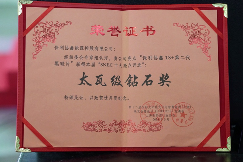 保利协鑫:多晶黑硅“TS+”荣获SNEC最高级太瓦钻石奖