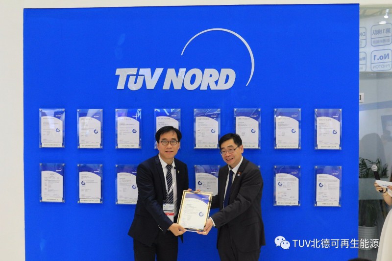 5月28日,上海SNEC北德展台E1-550,通威太阳能研发的高效单晶叠瓦组件获得由TÜV北德集团签发的全球首张叠瓦组件新标准认证证书。
