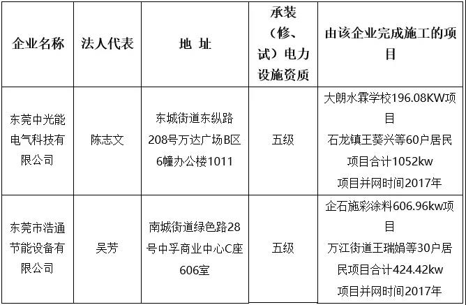 拟纳入东莞市分布式光伏施工企业名单的公示