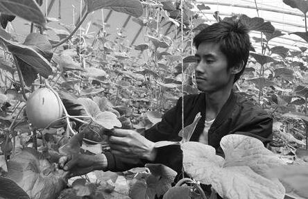 广至乡村民王正秀正在为销往国外的订单流星瓜打枝