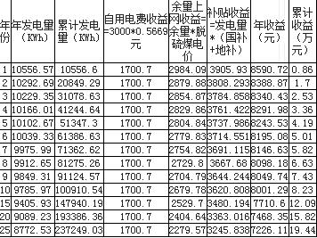 如果用户选择“全额上网”的方式并网,那么每年的收益就是发电量*光伏标杆电价。大约在第八年就可以收回投资成本,后面的每一年都是净收益。