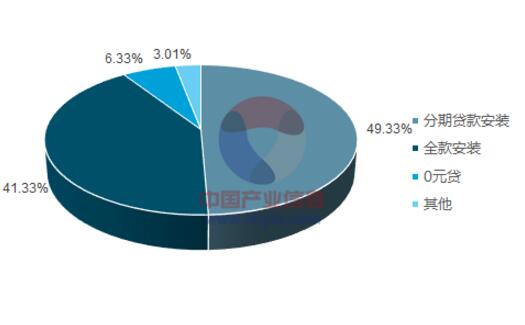 2017年安装户用光伏电站选择的付款方式中,全款安装比例为41.33%,分期贷款安装的比例为49.33,另外还有5.33%的用户是采用“0元贷”的方式安装。同时近70%的户用表示,每期的发电收益可以覆盖贷款金额。