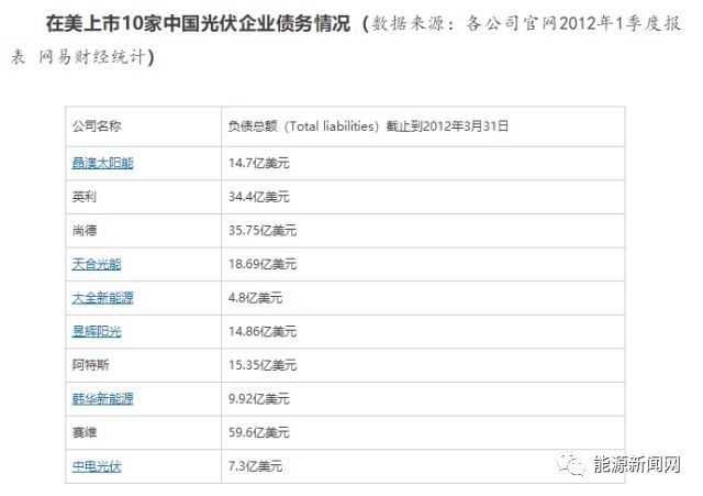 8月8日,媒体转载美国投资机构Maxim Group发布的一份研报显示,中国最大10家太阳能公司累计负债达到了175亿美元(按当时汇率计算,约合人民币1113.94亿元)。该机构指出,这表明整个行业已接近破产边缘。