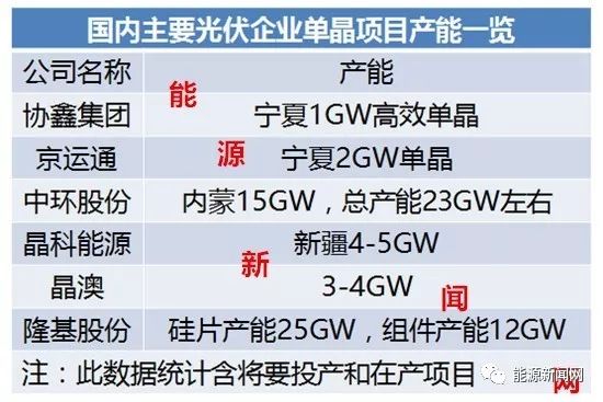 据不完全统计,计划投/扩产单晶项目有协鑫宁夏1GW高效单晶,京运通宁夏2GW单晶、阿特斯包头2GW单晶,中环内蒙15GW(公司总产能23GW左右)、晶科能源新疆4-5GW,晶澳太阳能3-4GW等单晶项目将投产,加之隆基股份单晶硅片产能25GW,单晶组件产能12GW,预计到2018年底单晶总产能将超过60GW,将是2016年底的4倍。