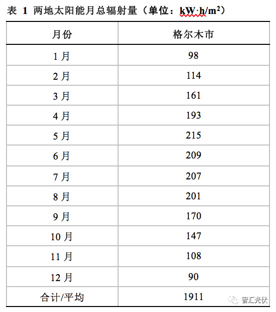 本文选取青海省格尔木市、江苏省南京市的太阳能资源的年总辐射量30年的平均值、2012年逐时数据进行分析。两个地区的月总辐射量30年平均值如表1所示。