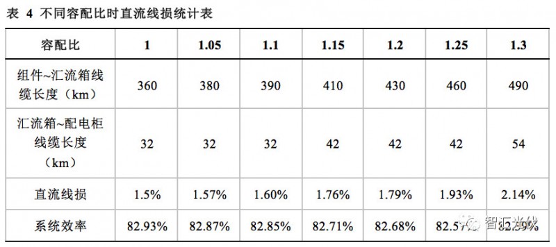 不同容配比时,在逆变器之前,由于直流线缆长度增加,直流线损增加。不同容配比下,线损考虑如下表所示。