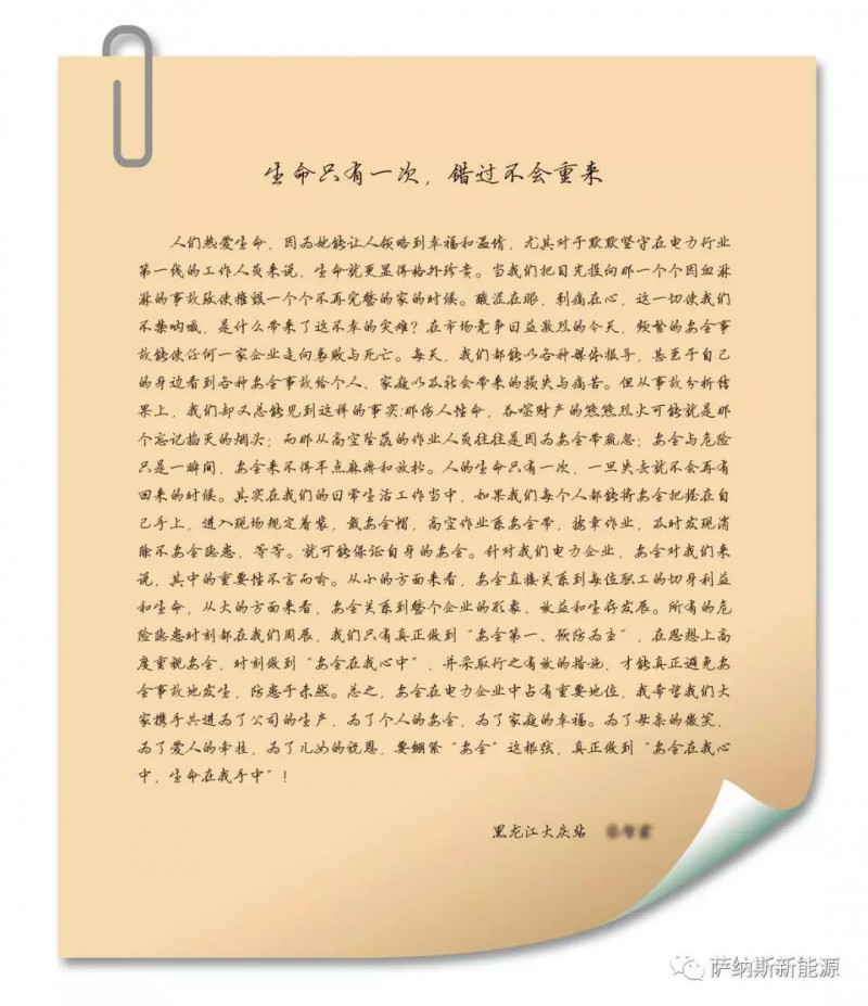 萨纳斯从成立之初就把电站安全作为重中之重狠抓落实。此次安全月活动共分为6个环节,自上而下开展安全月活动,不拘泥于枯燥的宣讲,而是把仪式、教育和实操紧密结合,多方面保证形式的新颖丰富,让年轻的80、90后愿意参与其中,在宣誓、承诺的环节中增强责任感,循序渐进的内化为职业光伏人的素养。