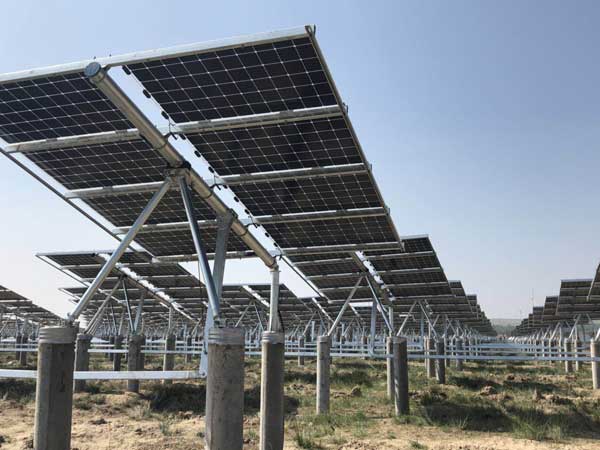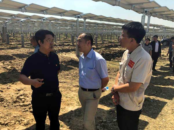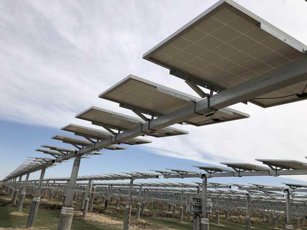 “这128座扶贫电站全部采用英利‘熊猫’双面发电组件、多晶黑硅组件、多晶多主栅新型组件产品、碲化镉薄膜弱光发电玻璃等新产品进行示范,确保了电站发电收益的最大化。”英利国内销售总公司副总经理李金涛表示,电站采用单轴太阳能跟踪支架系统并且全部采用高支架方式建设,综合发电效率较传统固定支架项目高10%以上,更重要的是,1500亩占地中有近1000亩以上的土地可以得到二次利用。