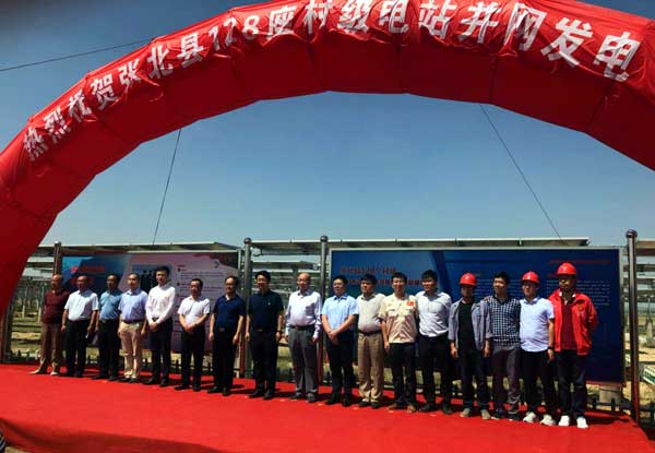 6月23日,位于张北县馒头营乡胡家坊村的村级分布式光伏扶贫电站“异地联建”项目并网发电。英利作为该扶贫项目的光伏组件提供商应邀参加并网仪式。