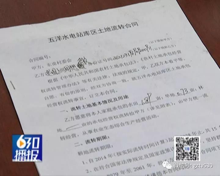 这些村民告诉记者,在2014年的时候,这里要建五洋水电站,当时以土地流转的方式,很多村民与东莆村村民委员会签订了《五洋水电站库区土地流转合同》,租期为15年,租金在2014年至2018年每亩为650元,支付方式为按年支付,每拖延一个月,则按年租金总额的0.5%标准加收滞纳金。但是,村民们,东莆村村民委员会只在2014年支付了一个季度的租金,还有在今年前一个月支付了2018年一年的租金,2015年至2017年三年的租金都没有支付。