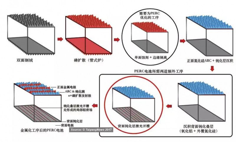 图4. PERC电池生产工艺流程(图片来源Taiyang News 2017)