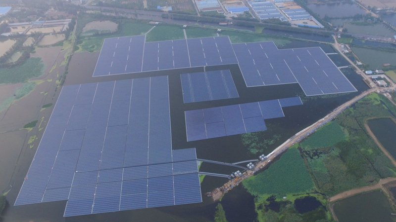 沛县鑫日是协鑫新能源在苏北并网的单体体量最大的农光互补电站,而在2017年沛县弘岳一期项目成功运营之后,公司在徐州沛县已持有20MW水面漂浮电站,在进行光伏发电的同时,继续进行水产养殖,实现了节约土地、绿色环保、生态养殖等方面的综合有效利用。