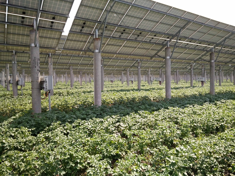 电站坚持在确保农业生产的基础上实施光伏项目,坚持农地农用,以农为本。电站已大面积种植了毛豆、马铃薯、洋葱等农作物,大获丰收。通过科学布局,立体化种植,马铃薯套种玉米,马铃薯收获后套种白菜,实现板上发电,板下一地三收,带来四份收入。其中马铃薯经过了山东省农科院的专家评审,做到了光伏板下不影响产量且有增益,获得了专家的一致赞赏。