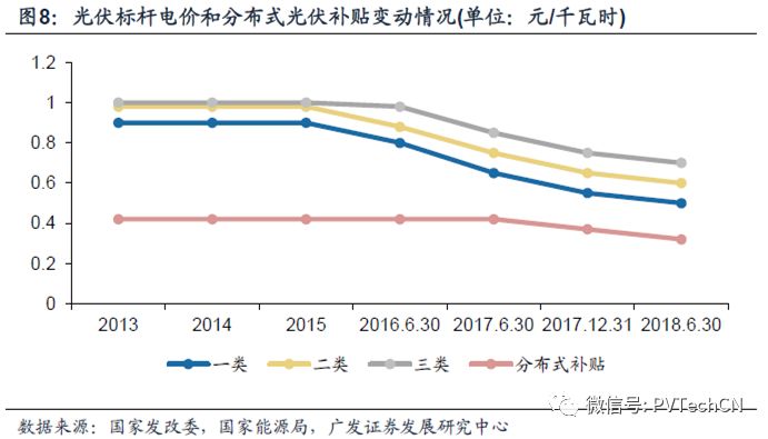 国家发改委,财政部和能源局5月31日发布了《关于2018年光伏发电有关事项的通知》,主要体现在两方面“降电价,限规模”。降电价方面,自发文之日起,新投运的光伏电站标杆上网电价每千瓦时统一降低0.05元,I类、II类、III类资源区标杆上网电价分别调整为每千瓦时0.5元、0.6元、0.7元(含税)。新投运的、采用“自发自用、余电上网”模式的分布式光伏发电项目,全电量度电补贴标准降低0.05元,即补贴标准调整为每千瓦时0.32元(含税)。