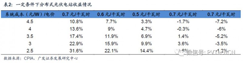 我们对分布式光伏进行了简单的测算,在30%的自有资金,在7%长期贷款利率的条件下,在东部地区可利用小时数约1100小时的情况下,当整个项目投资降到3元/W的条件下,当电价降低到0.5元/千瓦时甚至更低的电价的时候,依然可以保证9%甚至更高的内部收益率,为分布式光伏的再次大幅发展提供了可能。