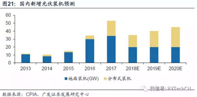 从海外市场来看,整体的海外市场需求比较旺盛(美国和日本除外)。印度政府计划到2022年实现100GW 的装机目标,包括40GW 太阳能屋顶发电和60GW 大中型太阳能并网项目,而3月31日是印度的财年,目前新财年的项目正在准备中,三四季度正式开工建设,印度市场依然保持相当的规模,年装机预计超过7GW。
