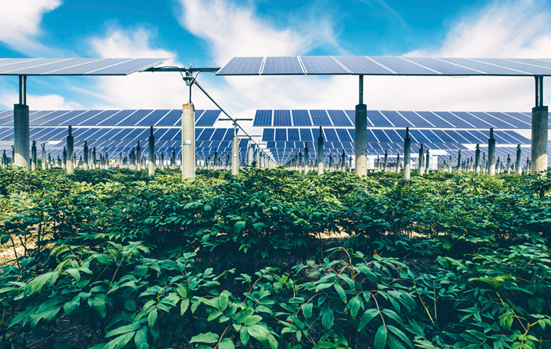 如山西耀光20MW光伏扶贫电站规划了大田种植结合温室大棚等的形式开展农业种植:在大田种植适宜当地土壤特性的油牡丹及中药材,并设计连栋温室、独栋大棚、拱棚等用于食用菌和蔬菜种植。在河南省南召鑫力100MW光伏扶贫电站,协鑫新能源因地制宜,规划结合其地形及雨热同期的气候特点,种植猕猴桃、苹果、桃,辛夷、杜仲、石斛,玉兰等水果、中药材和花卉。通过引进特色品种和合理轮作的方式,提升地区农业发展水平。