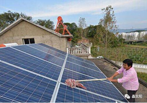 在用清水冲洗光伏板后用拖把擦洗附着在电池板上的灰尘即可。