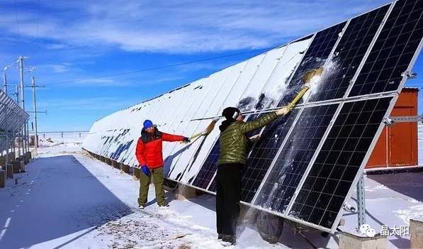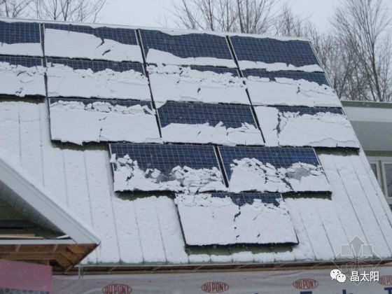 积雪覆盖住光伏板,致使光伏板无法接收阳光,影响其发电。可以用笤帚等清扫积雪即可。禁止使用硬物(如铁锹)去铲雪。