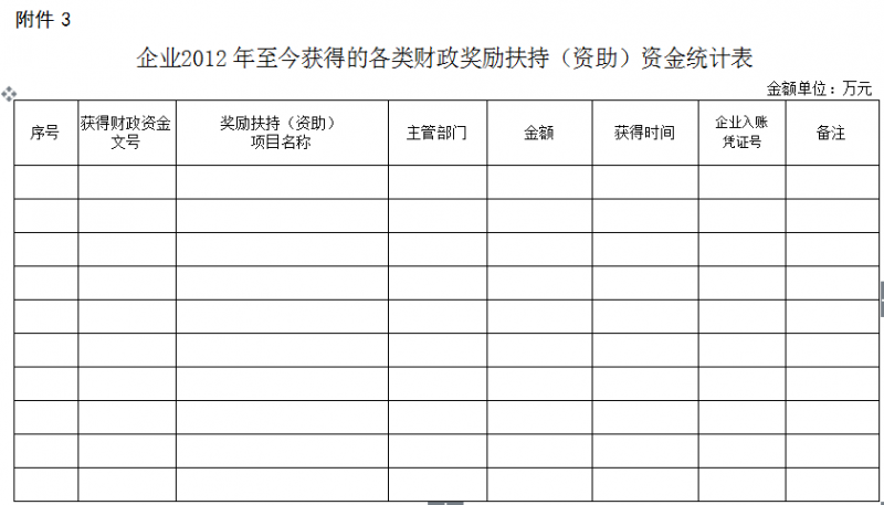 5. 企业2012年至今获得的各类财政奖励扶持(资助)资金统计表(附件3);