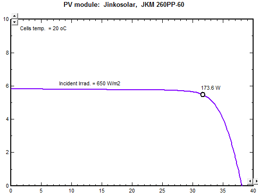 根据截取的数据,1月22日最大的日照强度出现在12:30左右,背板温度20度左右。这时260W组件的实时功率为170W左右。如果把40KW逆变器接满组件,24块组件一串×8路=192块;此时逆变器最大的直流输入功率为33KW。