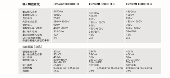 古瑞瓦特40KW组串式逆变器的输出电压是480V,这个电压是美标电压,一般写成227/480V;跟我们国家230/400V是有一点区别的。为什么使用美标电压,主要是为了减小电流,减少损耗,提升逆变器效率。这类逆变器只能用在带升压的光伏系统中,比如10/35KV并网。如果打算380V并网,那么就不能使用这款逆变器了。