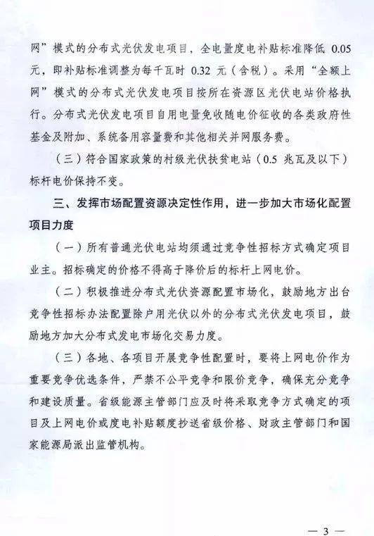 3、新投运的光伏电站标杆上网电价每千瓦时统一降低0.05元,1、2、3类资源区标杆上网电价分别调整为每千瓦时0.5元、0.6元、0.7元(含税)。