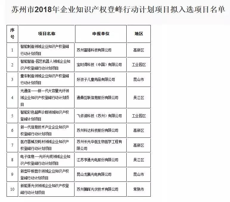 近日,苏州知识产权局公布2018年度苏州企业知识产权登峰行动计划,苏州腾晖光伏技术有限公司成功入选。苏州市知识产权登峰行动计划是由苏州知识产权局推出的政策,旨在有效发挥知识产权对企业创新发展的引领和支撑作用,推动企业实施知识产权战略、灵活运用知识产权制度、增强企业核心竞争力,促进苏州市科技创新企业勇登行业高峰。