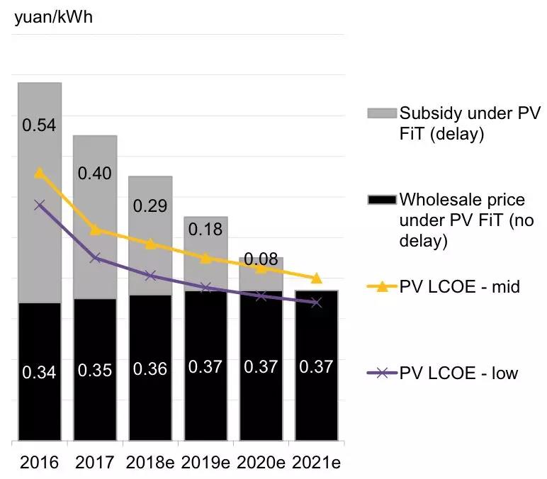 新建光伏与标杆电价比较,数据来源:彭博新能源财经