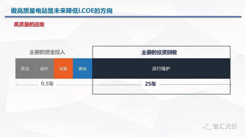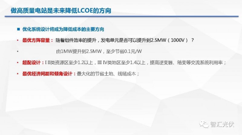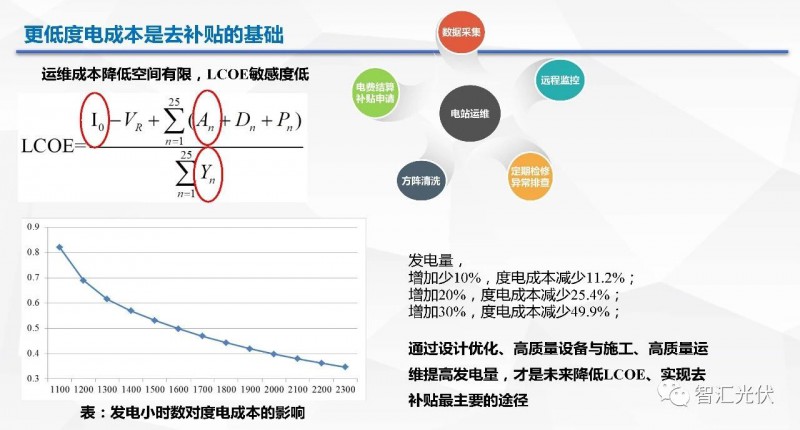 利用先进的技术、系统设计方案,依靠高质量的设备、高水平的施工,精心的运维,来提高发电量,才是未来度电成本下降的主要路径!