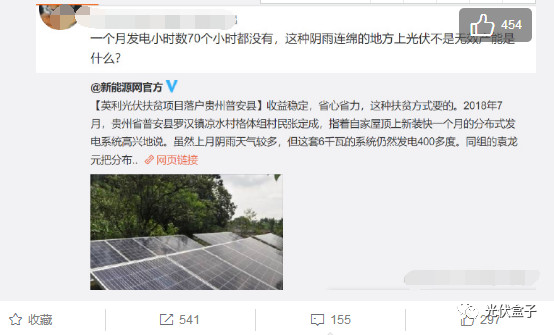 本来是利国利民的好事,可是网上有个光伏扶贫电站引发了众人的热议。这事情是由一则新能源官微发布的一篇文章引起的,文中描述:“2018年7月,贵州省普安县罗汉镇凉水村格体组村民张定成,指着自家屋顶上新装快一个月的分布式发电系统高兴地说。虽然上月阴雨天气较多,但这套6千瓦的系统仍然发电400多度。……”