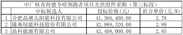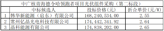 中广核青海德令哈领跑者项目光伏组件采购(第三标段)