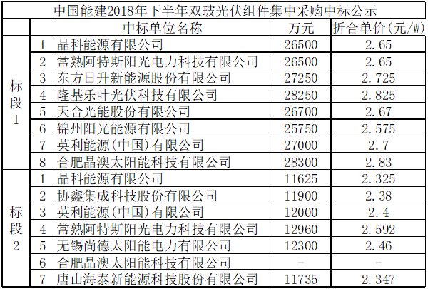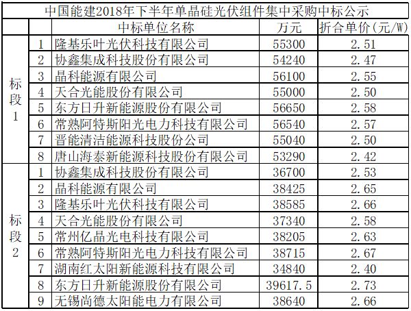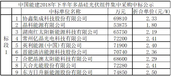 中国能建2018年下半年单晶硅光伏组件集中采购
