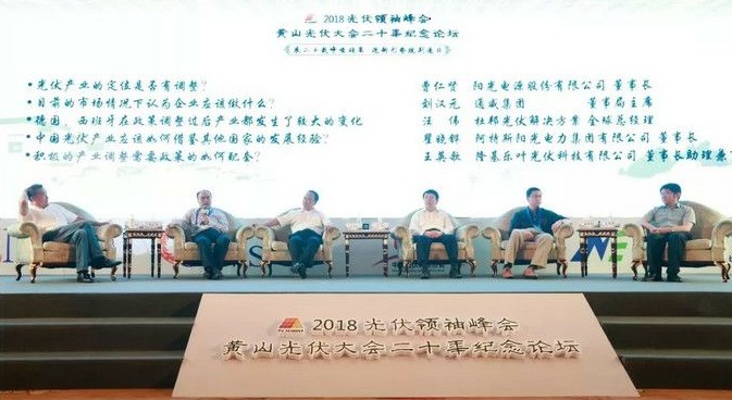 7月8日,缘起于一张老照片的“2018光伏领袖峰会·黄山光伏大会二十年纪念论坛”在黄山举行,会议直击现阶段行业痛点,解读最新政策、理性总结20年行业发展得与失,协力共谋行业未来发展方向与路径。在对话环节,阳光电源曹仁贤、通威集团刘汉元、杜邦汪伟、阿特斯瞿晓铧、隆基乐叶王英歌分别就以上问题发表了自己的观点。