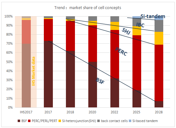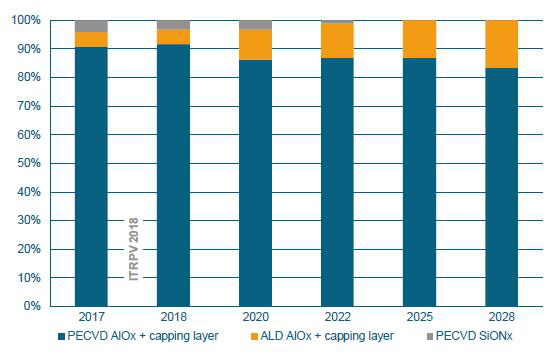 图:基于AlOX的背钝化技术的市场份额预测(来源:ITRPV 2018)