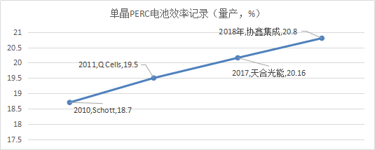 PERC电池是太阳能电池效率纪录一次又一次被打破的主要技术贡献者。2018年上半年,PERC电池效率记录为23.95%,由晶科在2018年5月9日创造。