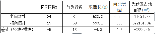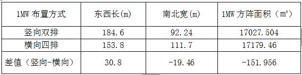 通过以上对比,光伏组件竖向、横向布置,相对整个项目用地面积而言,占地面积的差异基本可以忽略不计。