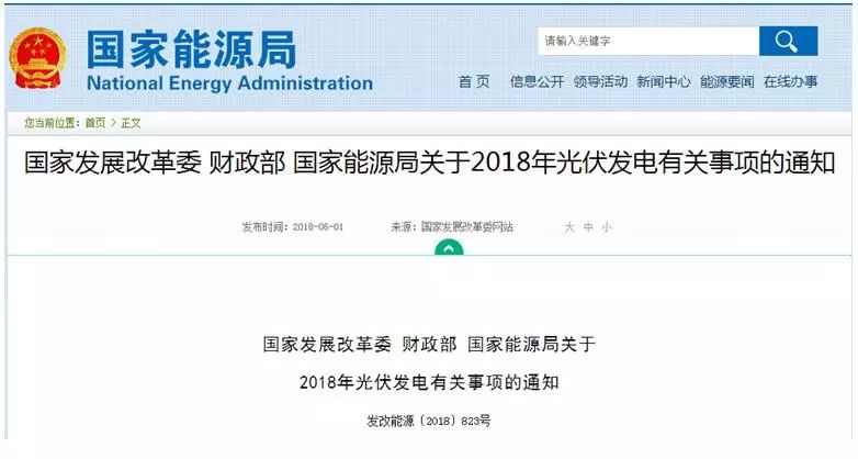 而6月1日晚,中国国家发展改革委、财政部、国家能源局三部门联合发布的《关于2018年光伏发电有关事项的通知》(行业戏称“531”新政),则彻底掀起了光伏行业内的“滔天巨浪”。