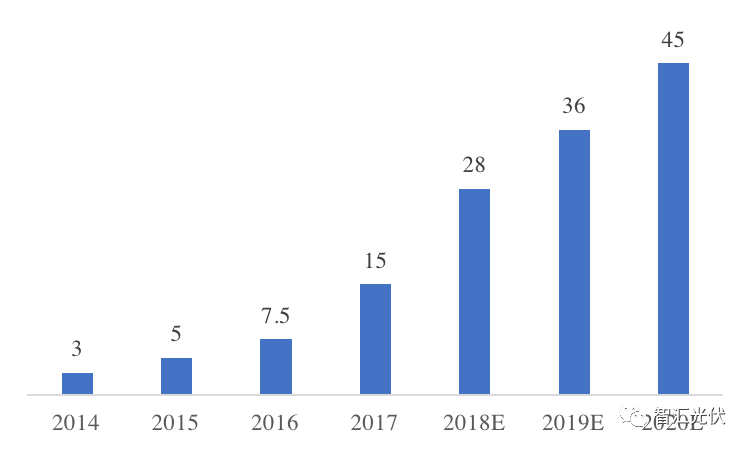 2018年1月19日晚,隆基股份抛出三年扩张计划,在2017年底硅片产能15GW的基础上,力争单晶硅片产能2018年底达到28GW,2020年底达到45GW。
