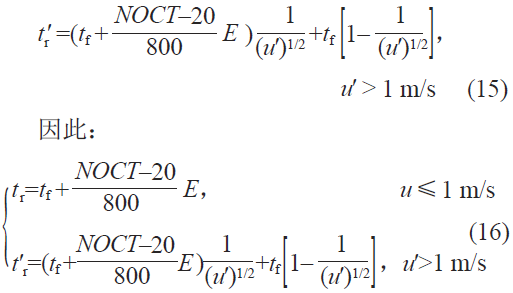 式中,t′r 为当风速大于1 m/s 时光伏组件的表面温度;u′ 为大于1 m/s 时的风速。