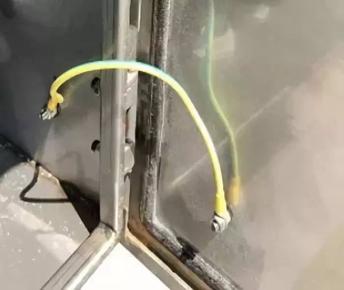 配电箱的柜门与柜体要做跨接线,保证可靠接地,如下图所示。
