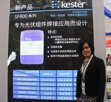 此外,Kester还针对MBB电池专门开发了助焊剂产品。而Kester助焊剂还有一大优势在于1年的有效期,是其他同类产品的两倍。郑雅伦博士表示,其他企业的产品一般有效期只有半年,从生产到检测然后从库存到客户手里,往往有效期只剩下了三个月,这令客户非常头疼。而Kester的产品率先把有效期做到了一年,解决了客户的烦恼。Kester的助焊剂也解决了焊接工艺中常见的反光膜剪切力不足、焊接面微小、不易焊接等难题。