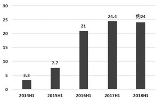 2014—2018年半年度我国新增装机情况(单位:GW)