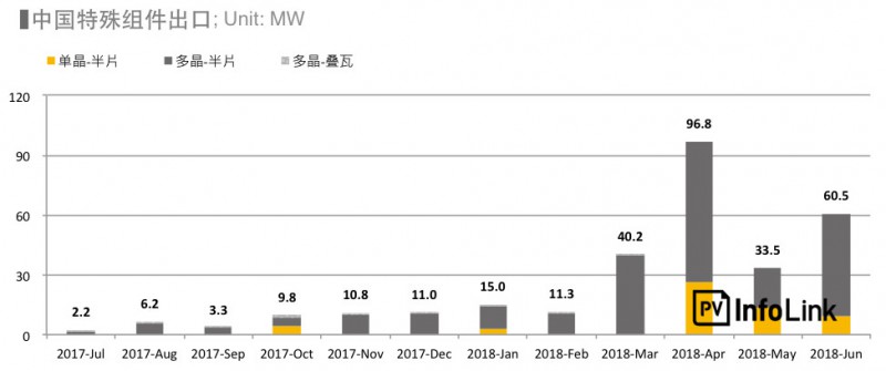 2018H1高效组件及特殊组件出口占比提升至15.8%